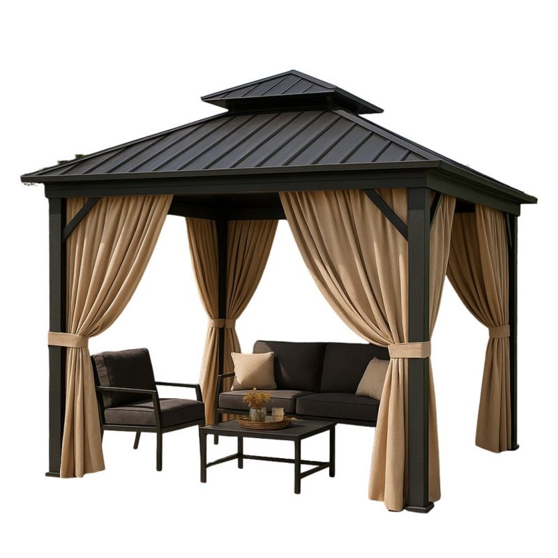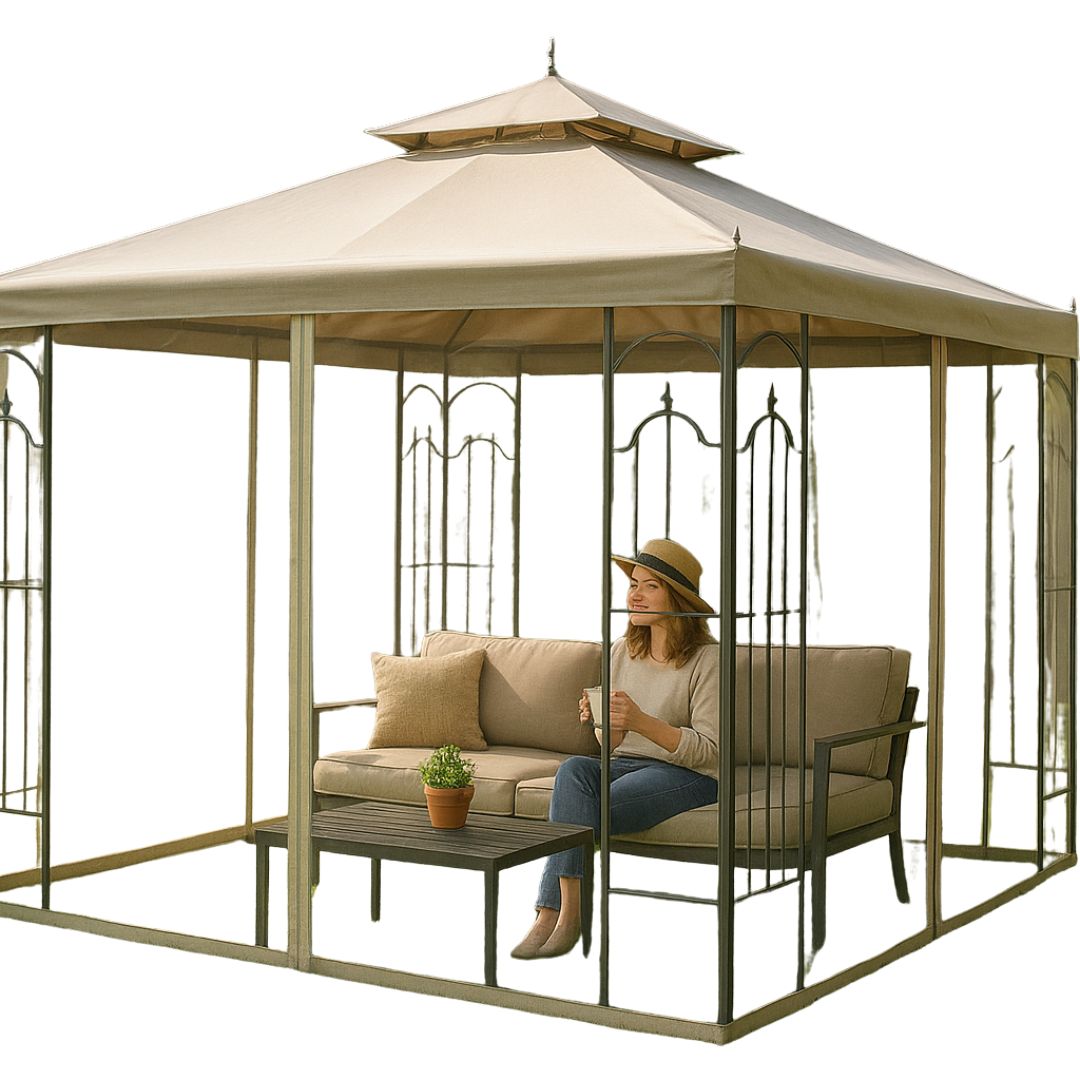 10×10 Steel Outdoor Patio Gazebo with Roof
